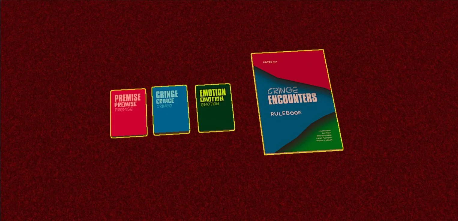 Cringe Encounters is a multiplayer party game designed for adults that are inspired by the popular game Cards Against Humanity. The game involves players making cringe-worthy statements about each other's past and then justifying these statements using a randomly picked emotion.